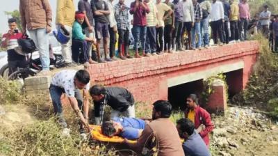 गाजीपुर में भीषण सड़क हादसा: अज्ञात वाहन ने बाइक को रौंदा, युवक की मौत, साथी घायल।