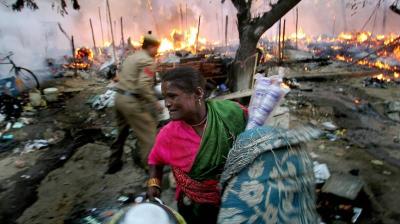 नक्खीघाट में भीषण अग्निकांड: 25 झुग्गियां जलकर राख, गैस सिलिंडर फटने से दहला इलाका