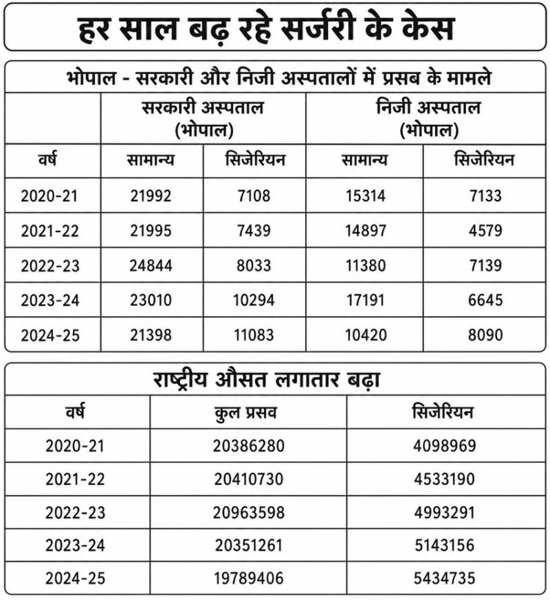 भोपाल | आज के दौर में मां बनने की प्रक्रिया अब केवल प्राकृतिक सुख का विषय नहीं रह गई है, बल्कि यह सुविधा और भारी-भरकम खर्च का सवाल बन चुकी है। डॉक्टरों और अस्पतालों के बदलते रवैये ने प्रसूता को 'मरीज' और प्रसव (डिलीवरी) को एक 'बीमारी' की तरह पेश करना शुरू कर दिया है। आंकड़ों के अनुसार, भोपाल जैसे बड़े शहरों में निजी अस्पतालों में हर दूसरा और सरकारी अस्पतालों में हर तीसरा बच्चा ऑपरेशन टेबल पर पैदा हो रहा है। 'हाई रिस्क प्रेगनेंसी' के नाम पर डराकर परिजनों को सिजेरियन (C-section) के लिए मानसिक रूप से मजबूर किया जा रहा है।
